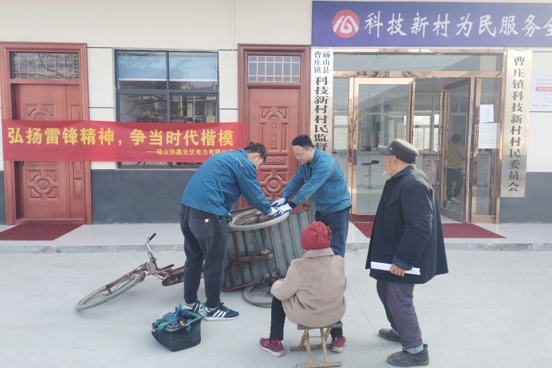 國(guó)投環(huán)能公司合肥分公司各電站開展了“用電安全”、“愛護(hù)環(huán)境”、“植樹增綠”等志愿服務(wù)活動(dòng),看望慰問了附近社區(qū)留守老人,幫助他們檢修交通工具,向小學(xué)生講解了光伏發(fā)電原理和安全用電知識(shí)。