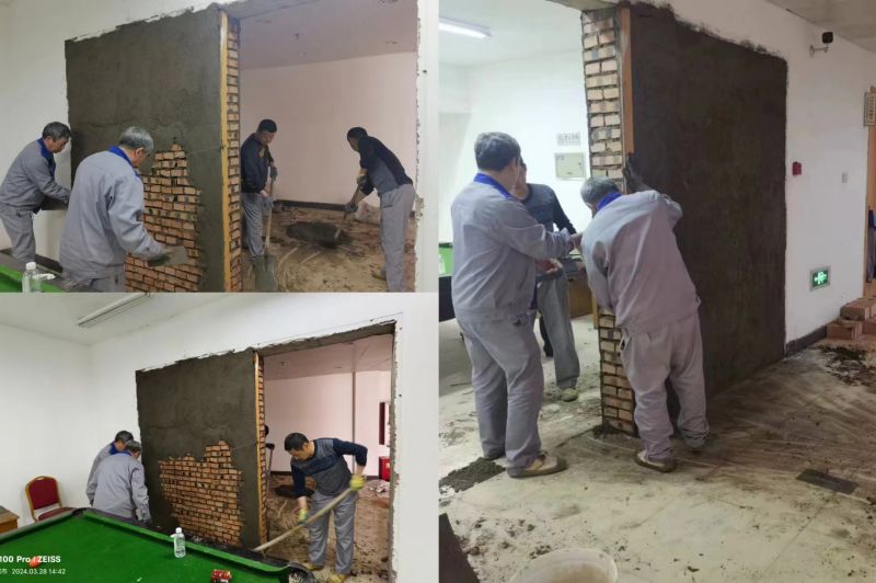 新辦公區(qū)分布在體育館主館1—3層,各樓層建筑結(jié)構(gòu)、房間戶型、施工方案均不同,在時(shí)間緊、任務(wù)重的情況下,工程維修負(fù)責(zé)人第一時(shí)間召集相關(guān)責(zé)任主體對(duì)施工方案進(jìn)行全面細(xì)致地評(píng)估研判,在做好深化圖紙、確定施工投入材料及工藝效果、落實(shí)分項(xiàng)施工方案及技術(shù)措施保障等籌備工作的基礎(chǔ)上,確保人員及作業(yè)環(huán)境安全的前提下,組織工程人員6名、歷時(shí)5天,拆除廢棄配電柜,壘砌磚墻,刮膩噴漆,改造電路,鋪設(shè)空調(diào)電纜及排水管路,共裝修改造辦公用房11間;該工程若外包費(fèi)用約8萬元,自行修繕改造費(fèi)用僅約5萬,節(jié)省約3萬元、節(jié)省比率達(dá)到37.5%。華強(qiáng)資產(chǎn)公司以“能自主維修絕不外委”的工作理念,節(jié)支降耗,改善環(huán)境。