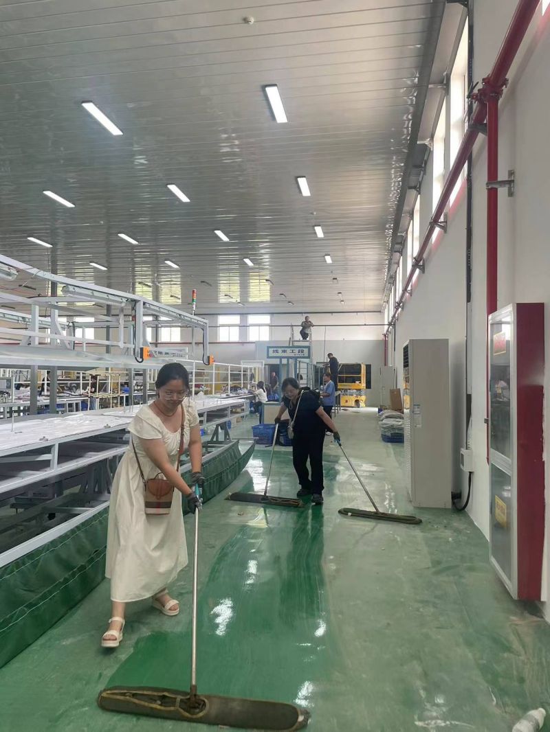 活動開始,新亞公司相關(guān)負(fù)責(zé)人向大家講解了注意安全事項(xiàng),分發(fā)工作手套和防護(hù)用品,按照分配工作內(nèi)容大家熱火朝天的投入了新工廠的整理及清掃進(jìn)程。黨員干部們率先垂范,帶頭拿起清掃工具開展現(xiàn)場打掃,男同志們負(fù)責(zé)規(guī)整運(yùn)送貨物至倉庫,女同志們按照各自包干區(qū)域細(xì)致清掃廠區(qū)地面。在炎熱的高溫下,大家齊心協(xié)力、分工協(xié)作、奮勇爭先,很快完成各自分配任務(wù),充分體現(xiàn)了不怕苦不怕累的戰(zhàn)斗精神。