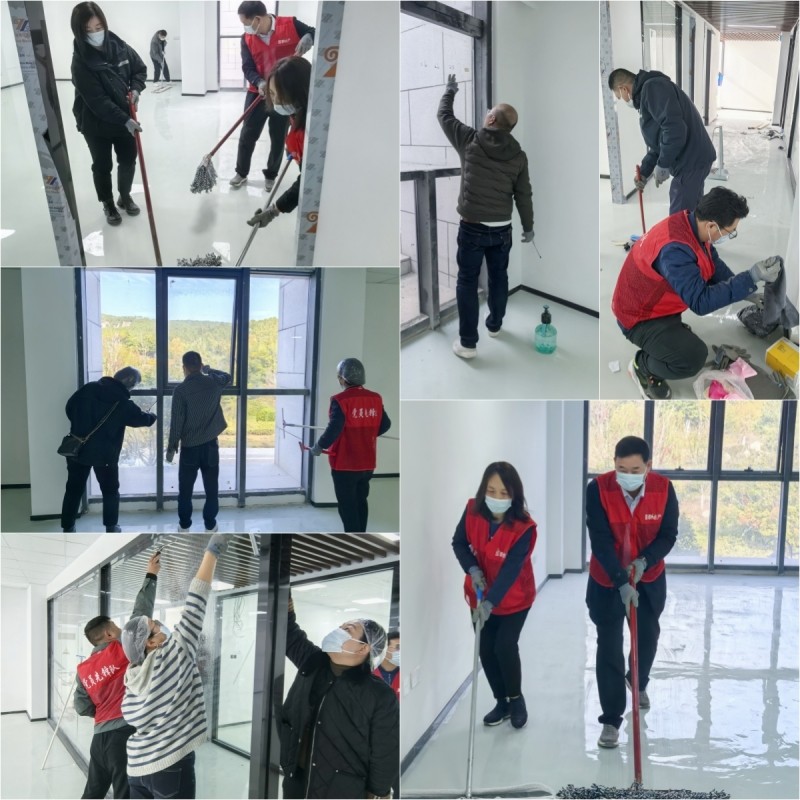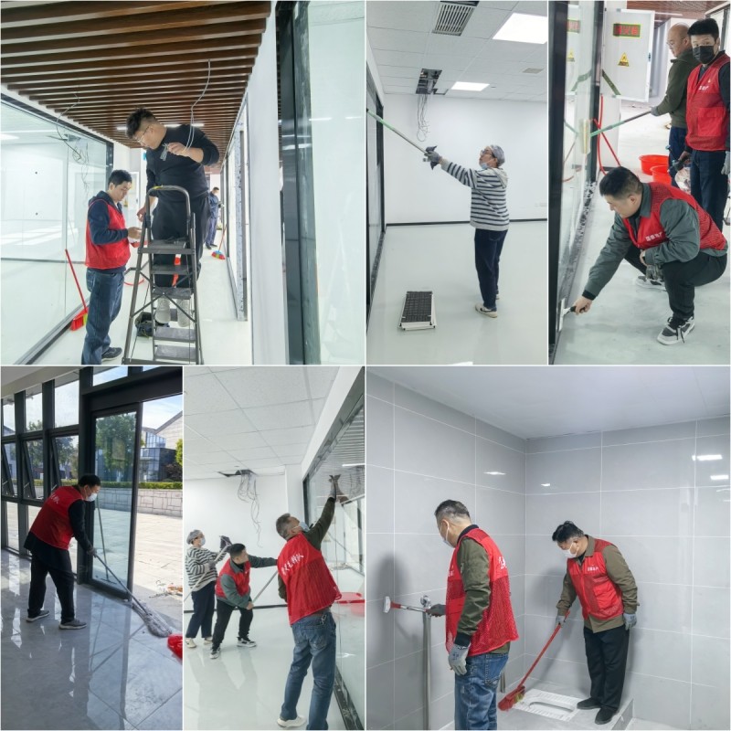 “支部建在項(xiàng)目上、黨旗插在工地上”。國(guó)泰地產(chǎn)黨支部始終堅(jiān)持黨建品牌與工程項(xiàng)目深度融合,項(xiàng)目在哪里黨員先鋒隊(duì)就在哪里。到達(dá)活動(dòng)現(xiàn)場(chǎng)后,黨員先鋒隊(duì)成員和志愿者們主動(dòng)拿起刮刀、塵推、地刷、掃把等10余件清潔工具,按照小組分工協(xié)作,清潔地面、清掃垃圾、擦拭玻璃,井然有序干起來(lái),有的人頭發(fā)里沾滿了灰塵,有的人臉上掛滿了汗珠,有的人汗水濕透了衣衫。大家不嫌臟、不嫌累,熱情高漲,紛紛以為企業(yè)降本增效為榮,樂(lè)在其中。