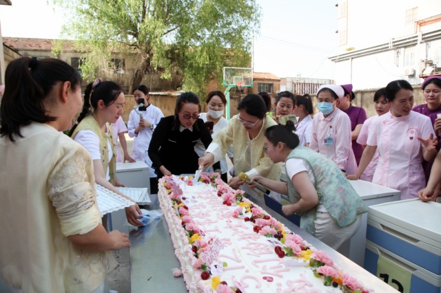 最后進(jìn)入激動(dòng)人心的共享節(jié)日蛋糕環(huán)節(jié)。護(hù)理部主任韓春蕾手持刀具,將節(jié)日蛋糕切成一塊塊,親手遞到各科護(hù)士長(zhǎng)手中,再由護(hù)士長(zhǎng)們分發(fā)至每一位護(hù)士姐妹手中。精美的蛋糕、甜蜜的滋味,仿佛溫柔的懷抱,包裹著每一位護(hù)士,她們臉上洋溢的燦爛笑容,預(yù)示著生活如這蛋糕般甜蜜圓滿。