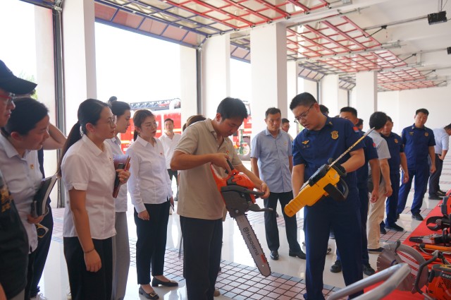 全體人員首先實地參觀了消防救援支隊特勤一站的救援車輛與裝備,消防員詳細(xì)講解了各類器材的功能與應(yīng)用場景,展示了快速破拆、水槍射流等實戰(zhàn)操法,精湛技能和颯爽英姿贏得陣陣掌聲。在體驗環(huán)節(jié),青年代表體驗了消防液壓剪切鉗、消防水帶的操作使用。