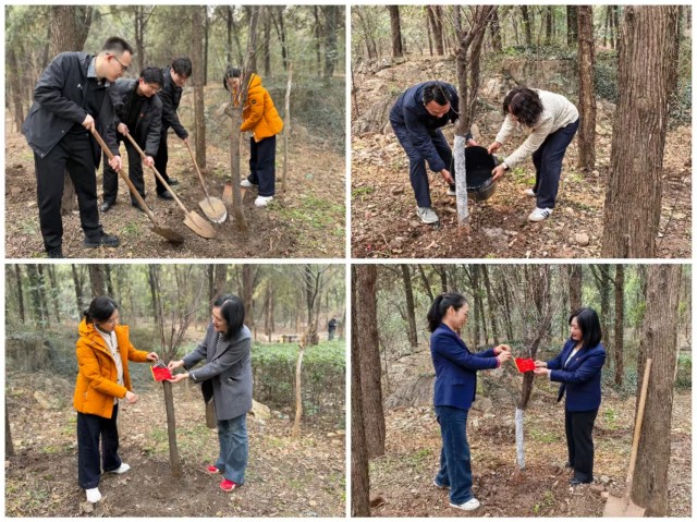 植樹活動環(huán)節(jié),黨員們紛紛寫下初心與承諾,懸掛在自己栽種的樹苗上。“一句誓言,一生作答?!薄霸谄椒仓袌允?,在奉獻中閃光,不負胸前的黨員徽章?!薄@些寄語如同一面面旗幟,飄揚在春風(fēng)中,激勵著大家在日常工作中踐行生態(tài)文明理念。