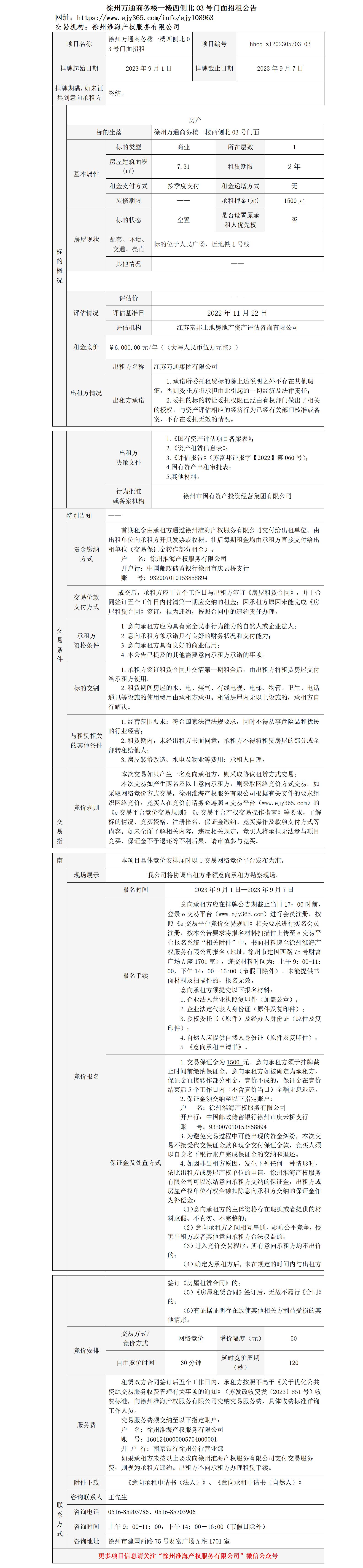 徐州萬通商務(wù)樓一樓西側(cè)北03號門面招租公告