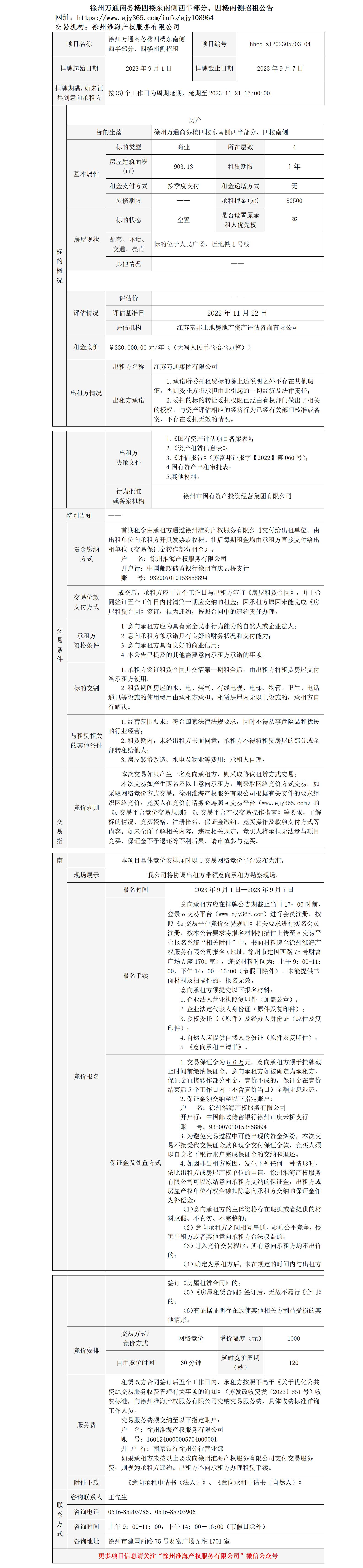 徐州萬通商務樓四樓東南側西半部分、四樓南側招租公告