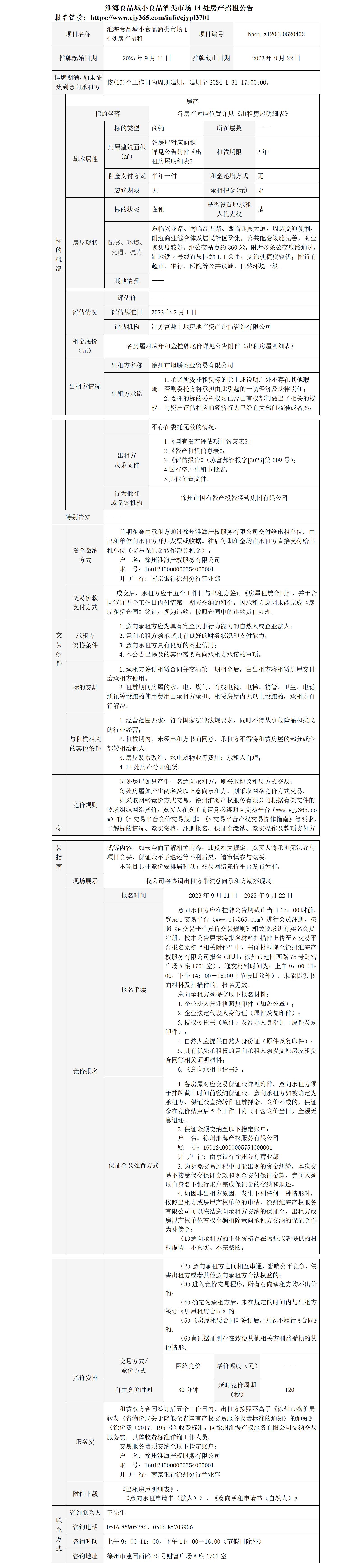淮海食品城小食品酒類市場(chǎng)14處房產(chǎn)招租公告