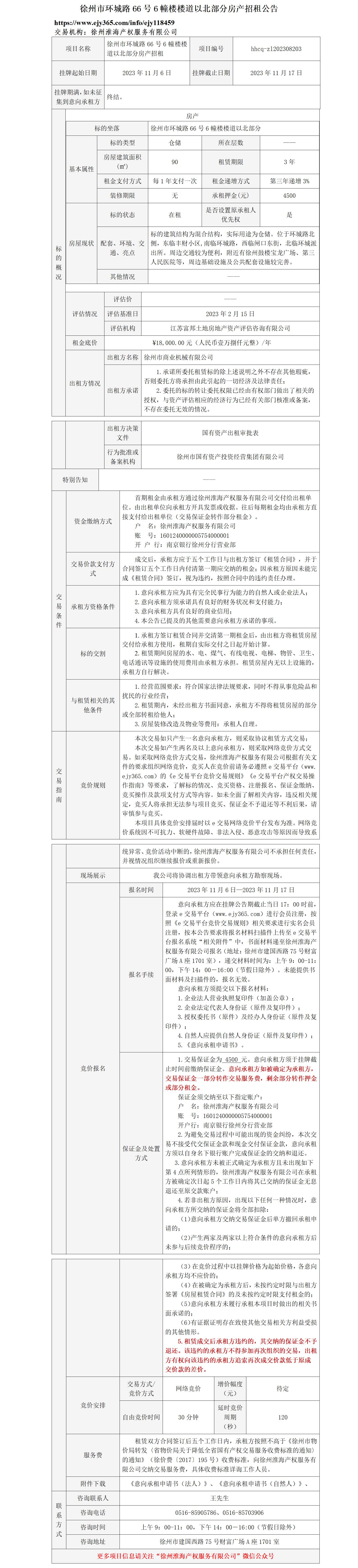 徐州市環(huán)城路66號6幢樓樓道以北部分房產(chǎn)招租公告
