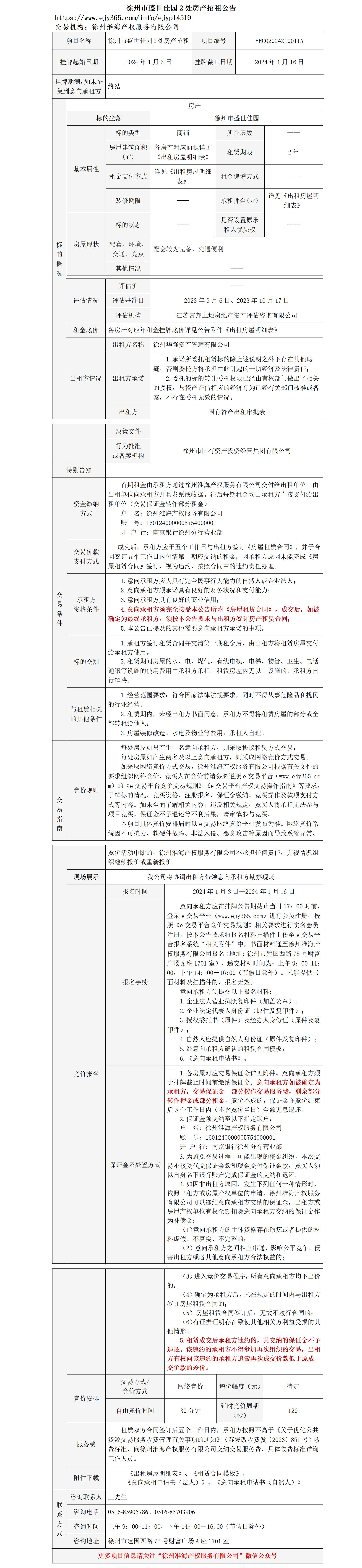 徐州市盛世佳園2處房產招租公告