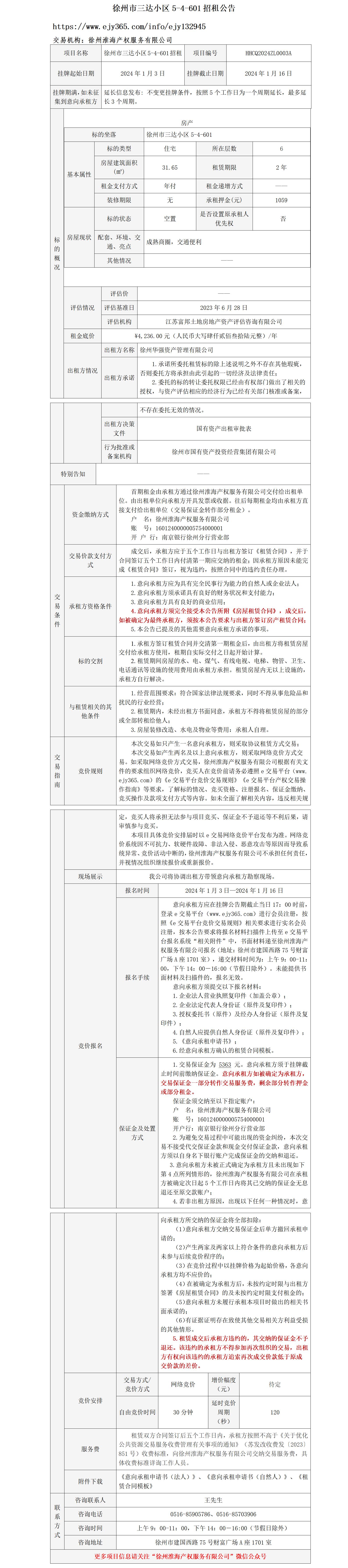 徐州市三達(dá)小區(qū)5-4-601招租公告