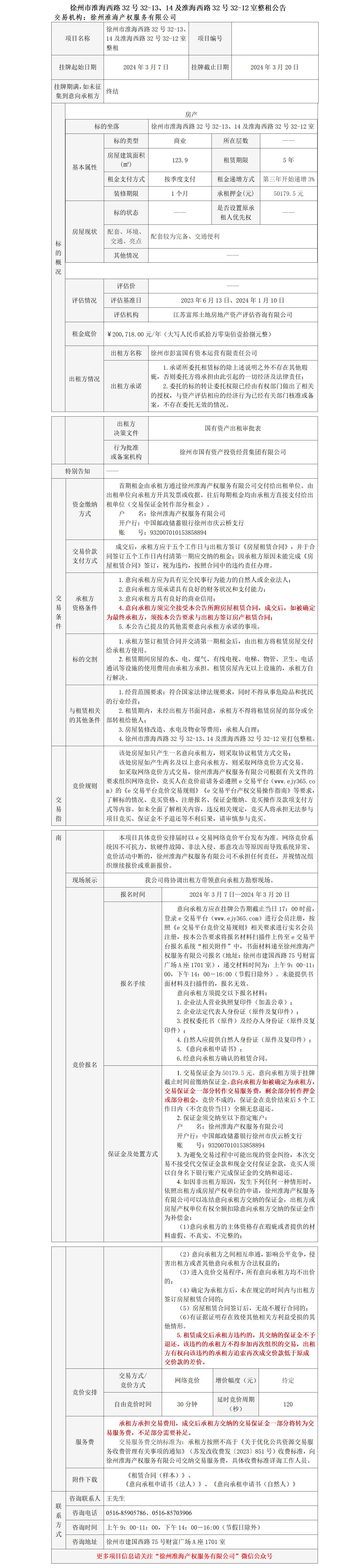 徐州市淮海西路32號(hào)32-13、14及淮海西路32號(hào)32-12室整租公告