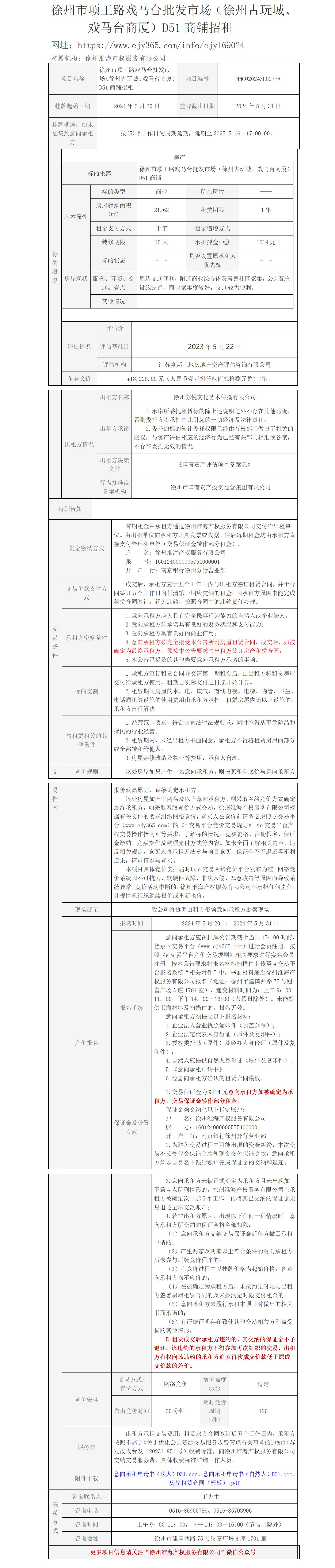 徐州市項(xiàng)王路戲馬臺(tái)批發(fā)市場(chǎng)(徐州古玩城、戲馬臺(tái)商廈)D51招租公告