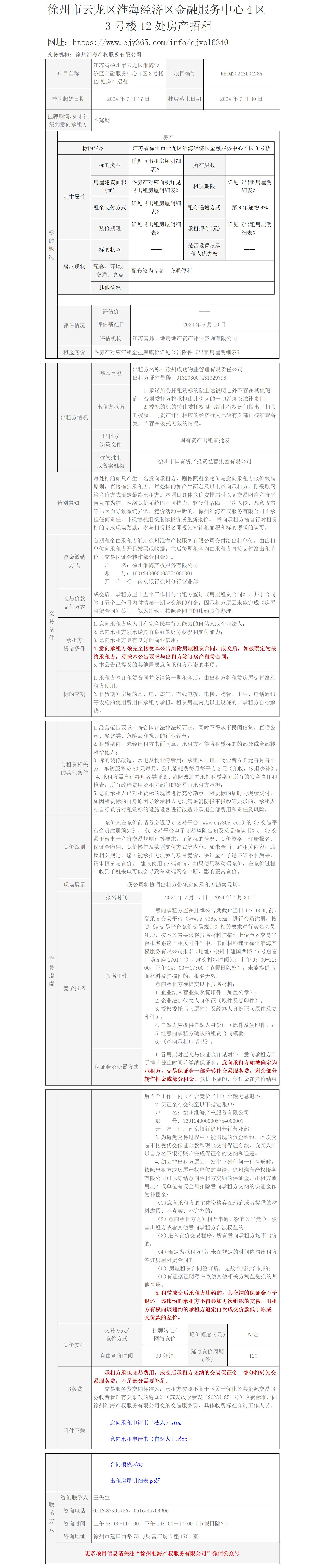 徐州市云龍區(qū)淮海經(jīng)濟區(qū)金融服務中心4區(qū)3號樓12處房產(chǎn)招租公告