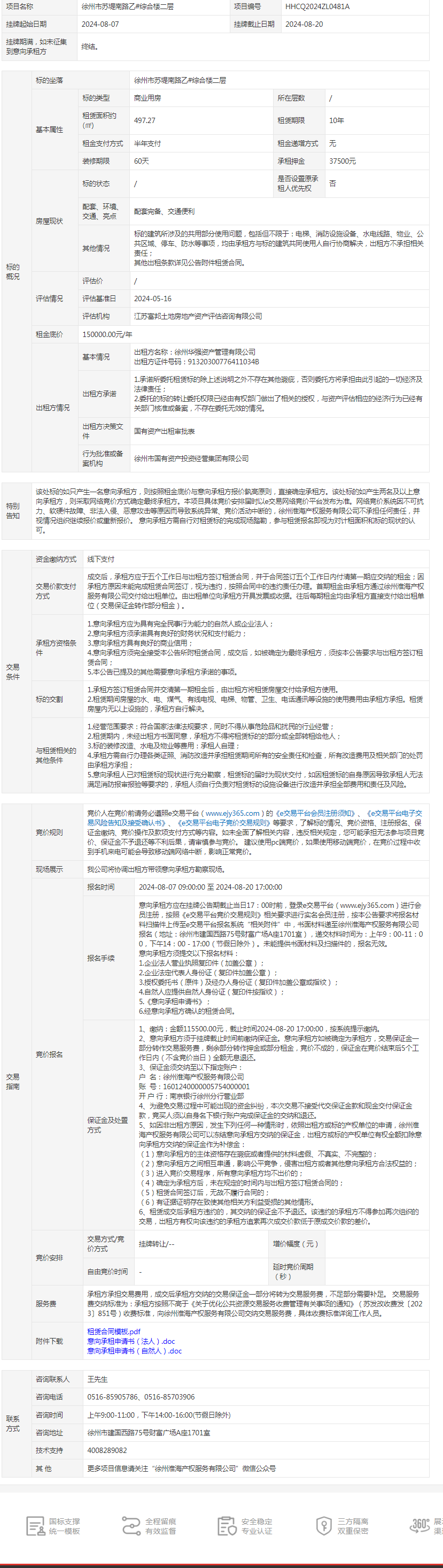 徐州市蘇堤南路乙#綜合樓二層招租公告