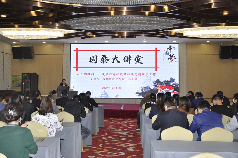 為持續(xù)深入開展習(xí)近平新時(shí)代中國(guó)特色社會(huì)主義思想學(xué)習(xí)教育,全面落實(shí)《國(guó)泰投資公司建設(shè)學(xué)習(xí)型企業(yè)實(shí)施方案》文件精神,培養(yǎng)企業(yè)核心競(jìng)爭(zhēng)力,促進(jìn)國(guó)泰投資公司轉(zhuǎn)型發(fā)展。近日,國(guó)泰投資開展“國(guó)泰大講堂”活動(dòng),第一期由機(jī)關(guān)黨支部承辦,特邀淮海戰(zhàn)役紀(jì)念館谷青珊老師授課。國(guó)…