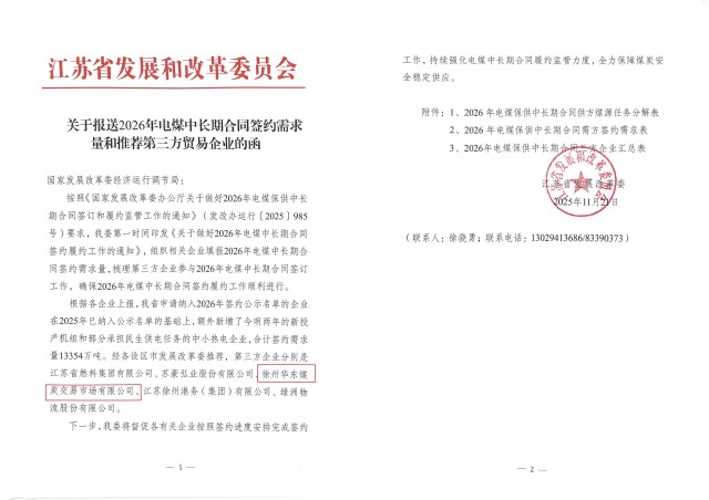 近日,徐州國投集團在能源領(lǐng)域布局傳來捷報。經(jīng)省市發(fā)改委審核,國家發(fā)展改革委批準,集團公司所屬徐州華東煤炭交易市場有限公司順利獲得2026年度電煤保供中長期合同簽訂資質(zhì),成功躋身江蘇省新增的5家電煤保供中長期合同第三方企業(yè)陣列。徐州國投集團作為徐州市綠色低碳能源產(chǎn)…