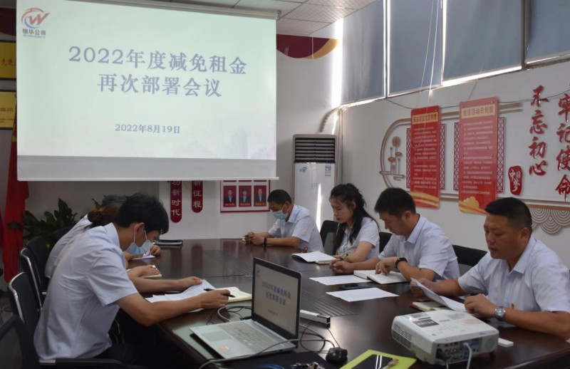 8月19日上午,物華公司召開2022年度減免租金再次部署會議,會上傳達(dá)了集團(tuán)公司進(jìn)一步加強(qiáng)房租減免政策落實(shí)會議精神,要求迅速貫徹會議精神,進(jìn)一步提高政治站位,充分認(rèn)識國有房屋減免租金政策的重要意義,要迅速對存在轉(zhuǎn)租、分租情形的房產(chǎn)及其租金減免政策落實(shí)情況開展實(shí)地摸…