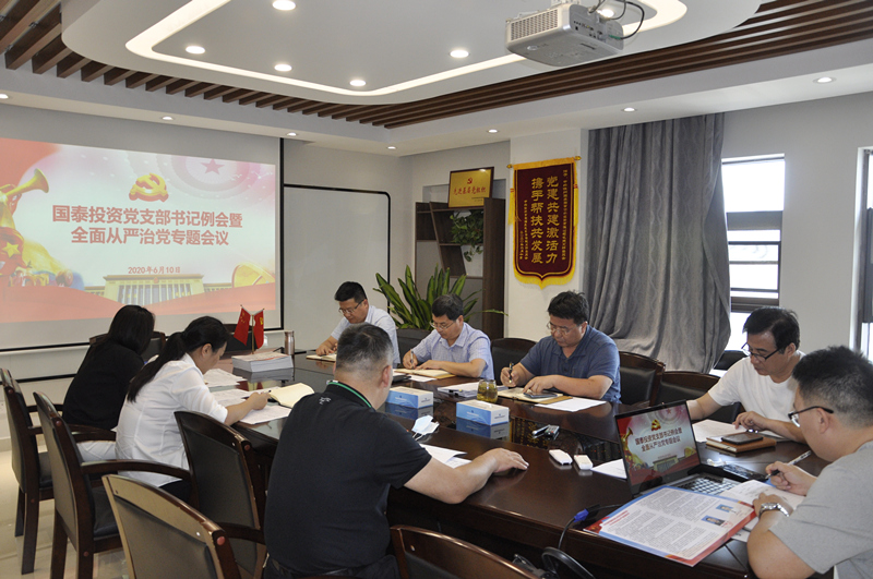 2020年6月10日下午,國(guó)泰投資黨總支召開(kāi)支部書(shū)記例會(huì)暨全面從嚴(yán)治黨專(zhuān)題工作會(huì)議。會(huì)議以習(xí)近平新時(shí)代中國(guó)特色社會(huì)主義思想為指導(dǎo),深入學(xué)習(xí)市紀(jì)委第十二屆五次全會(huì)精神,貫徹落實(shí)李曉東同志在集團(tuán)公司2020年全面從嚴(yán)治黨工作會(huì)議上的講話,推動(dòng)國(guó)泰投資公司全面從嚴(yán)治黨向縱深發(fā)展。會(huì)議由國(guó)泰投資黨總支書(shū)記霍凱主持,黨總支中心組成員、各直屬黨支部書(shū)記參加。