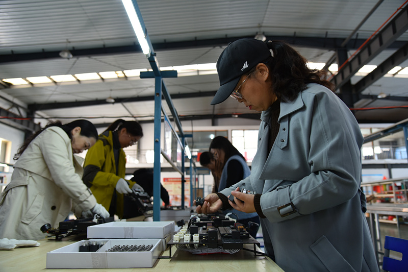活動中,黨員同志們首先參觀了車間和各個生產(chǎn)線,認(rèn)真聆聽新亞科技副總經(jīng)理代文全為大家講解公司產(chǎn)品、生產(chǎn)流程和工藝等情況,了解新亞科技主要產(chǎn)品,傾聽關(guān)于“千瘡百孔”操作板、自制測試臺等生產(chǎn)小故事,感受新亞科技自強不息、迎難而上的攻關(guān)精神。隨后,突擊隊員們分成兩隊,男同志們在新亞科技董事長謝珉的帶領(lǐng)下組裝貨架,女同志們在新亞科技總經(jīng)理周佩的帶領(lǐng)下參與工作流程,車間里氣氛熱烈,大家邊問邊學(xué)邊做,遇到貨架組裝不平、膠帶纏繞過松、保險絲按插不到位等小問題,就在技術(shù)能手的幫助下調(diào)整改進(jìn),通過不斷總結(jié)經(jīng)驗,突擊隊員們逐步從生疏到上手,最終圓滿完成工作任務(wù),內(nèi)心充滿勞動的喜悅。