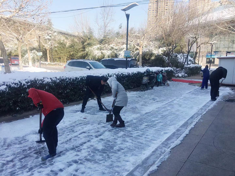 黨員志愿者們頂著刺骨的冷風,不畏嚴寒、甩開膀子,揮舞著鐵鍬、掃帚等勞動工具清掃院內(nèi)積雪,勞動的熱情和團結的力量讓這個冬日變得格外溫暖。在大家的共同努力下,園區(qū)及主干道的積雪逐漸清掃干凈,為工作與安全出行開辟了一條通暢道路。