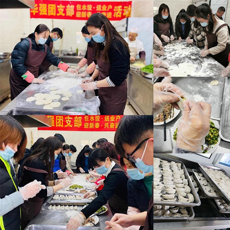 2021年2月10日,恰逢庚子鼠年最后一個(gè)工作日,華強(qiáng)資產(chǎn)公司團(tuán)支部在新春來(lái)臨之際,組織各部室青年干部職工在公司食堂開(kāi)展了熱氣騰騰的“包水餃 送業(yè)戶(hù) 迎新春 共奮進(jìn)”活動(dòng),不僅為體育館部分業(yè)戶(hù)及堅(jiān)守崗位的物業(yè)工作人員送去關(guān)懷和問(wèn)候,還為華強(qiáng)全體職工親手制作了一頓年味滿(mǎn)滿(mǎn)的餃子工作餐。