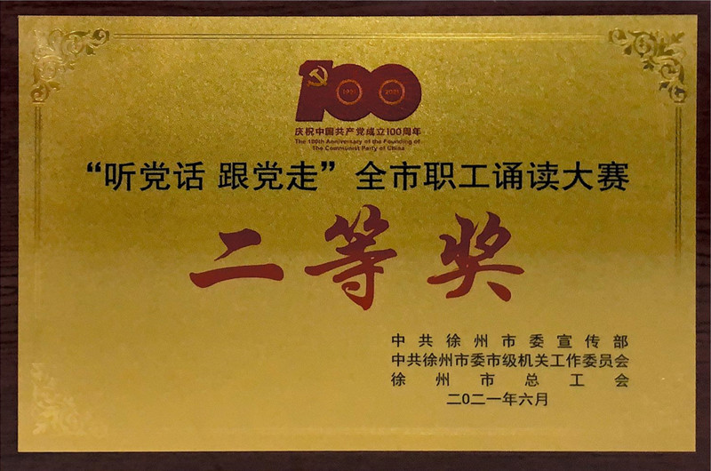 在市總工會(huì)聯(lián)合市委宣傳部、市委市級(jí)機(jī)關(guān)工委、市全民閱讀辦共同舉辦“永遠(yuǎn)跟黨走·建功新時(shí)代”慶祝建黨100周年系列活動(dòng)中,集團(tuán)公司榮獲系列活動(dòng)優(yōu)秀組織獎(jiǎng)。集團(tuán)公司選送的原創(chuàng)配樂詩(shī)朗誦《光輝的旗幟》榮獲市總工會(huì)“聽黨話·跟黨走”全市職工誦讀比賽二等獎(jiǎng)!