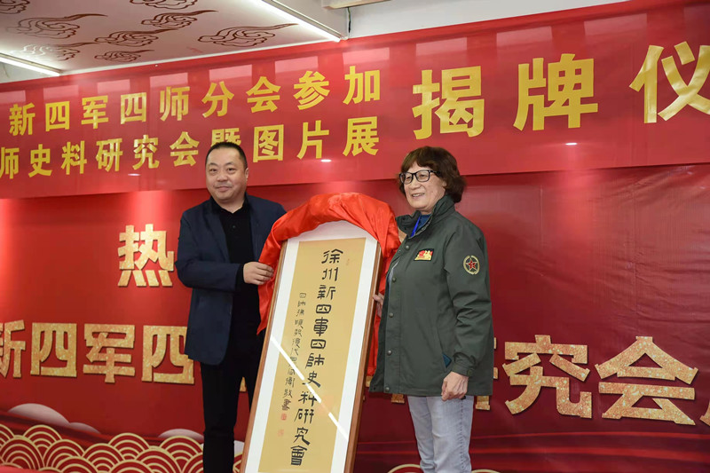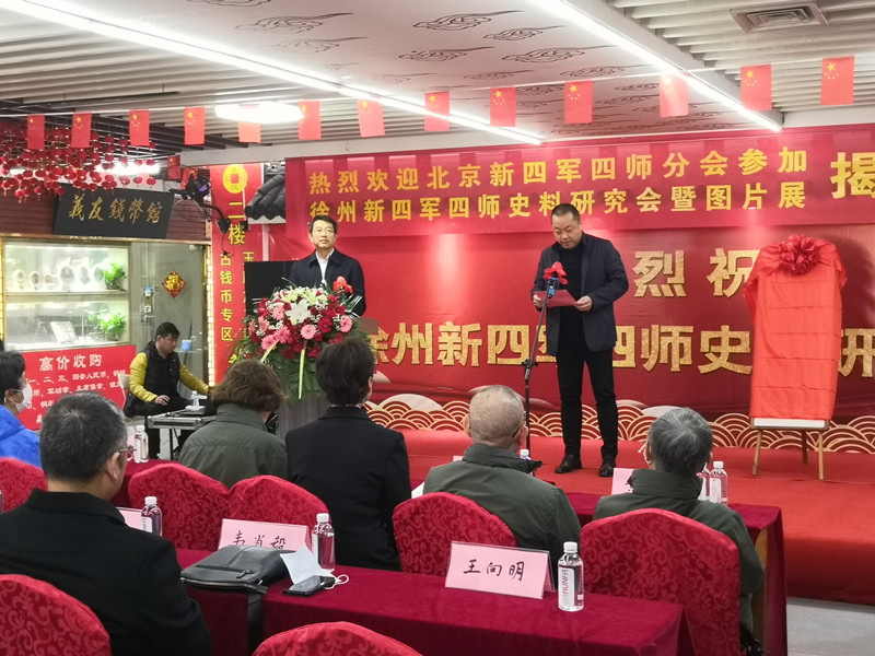下午2點,揭牌儀式在徐州古玩城正式舉行。原國務(wù)院副總理鄧子恢之女鄧小燕、原中國人民解放軍總參謀長、中共中央書記處書記黃克誠之子黃旭、原中國人民解放軍總政治部主任、中共中央軍委常委韋國清之子韋肖毅等老一輩革命家、新四軍的后代參加了本次活動。
