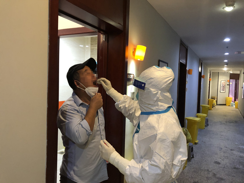 每入駐一名境外人員,工作組要進(jìn)行人員接駁,入隔宣教,信息采取、錄入、上傳,健康監(jiān)測(cè),標(biāo)本采樣和呈送,清潔消毒,廢棄物回收和處理,終末消毒等防控工作,以及送餐供應(yīng),各項(xiàng)報(bào)表,費(fèi)用管理,物資管理和供應(yīng),人文關(guān)懷,錄像監(jiān)測(cè),客房管理等后勤服務(wù)工作。事無巨細(xì),缺一不可。由于臨近春節(jié),隔離點(diǎn)接待境外人員很多,他們各自情況不同,入駐時(shí)間不分早晚。工作組不分白天黑夜處于工作狀態(tài),每天夜里都要迎接隔離者,一天休息不足6個(gè)小時(shí),基本上沒有好好休息過一個(gè)夜晚。每天都是超負(fù)荷在工作,但他們憑著強(qiáng)大的信念,一直保持著昂揚(yáng)的斗志。