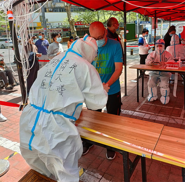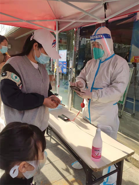 他第一時(shí)間報(bào)名參加子房街道王杰社區(qū)志愿者,4月2日,接到任務(wù)負(fù)責(zé)“黃碼”人員的核酸檢測(cè)信息登記工作。起初心里略過一絲緊張,擔(dān)心自己也變成“黃碼”,但轉(zhuǎn)念想到自己是一名黨員,黨員就是旗幟,黨徽就是鏡子,要發(fā)揚(yáng)出“越是艱險(xiǎn)越向前”的精神。于是他毅然穿上防護(hù)服走上工作崗位,在專業(yè)人員的指導(dǎo)下,很快勝任了工作。以后的每一天他都堅(jiān)守在“黃碼”檢測(cè)信息登記的崗位上。