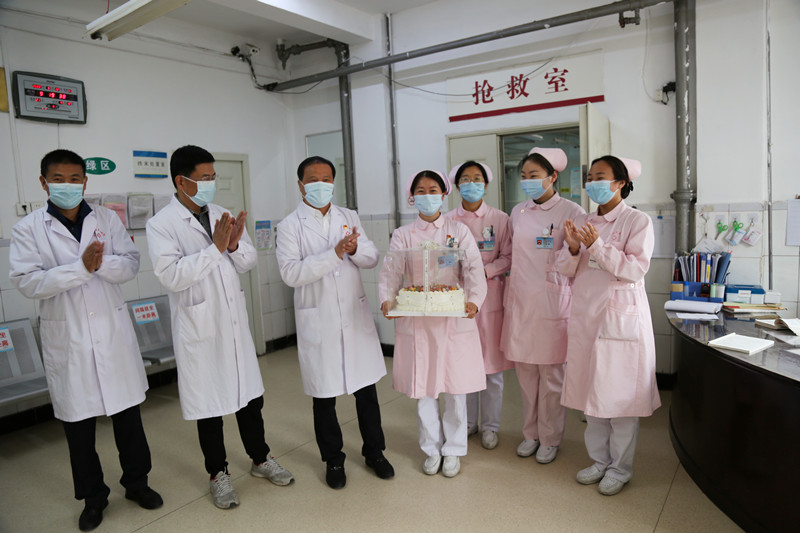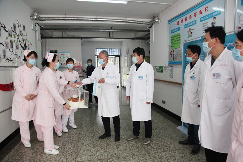 5月12日上午,院領(lǐng)導(dǎo)分成兩組,分別在黨委書記孫守訪、院長張心海帶領(lǐng)下,帶著定制的節(jié)日蛋糕來到臨床一線,慰問堅守崗位的護(hù)理姐妹們。每到一處病區(qū),院領(lǐng)導(dǎo)向她們送上誠摯的節(jié)日祝福,感謝她們對醫(yī)院護(hù)理工作的付出,叮囑她們在做好工作的同時,也要做好自身防護(hù),保重身體健康。護(hù)士們特別開心,紛紛感謝醫(yī)院的關(guān)愛,表示將遵守南丁格爾誓言,一如既往獻(xiàn)身護(hù)理工作,為患者減輕痛苦、促進(jìn)康復(fù),為醫(yī)院發(fā)展貢獻(xiàn)力量。