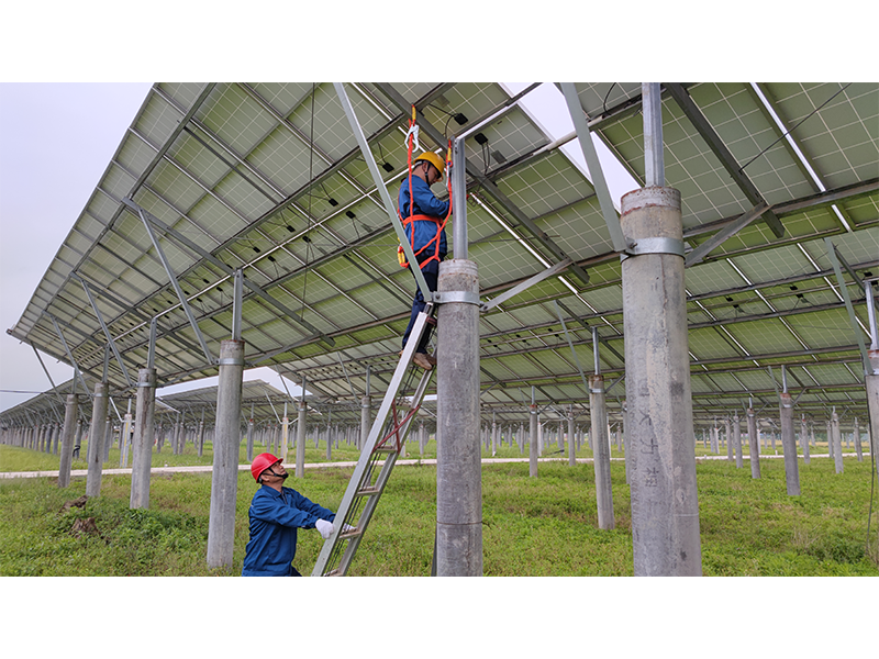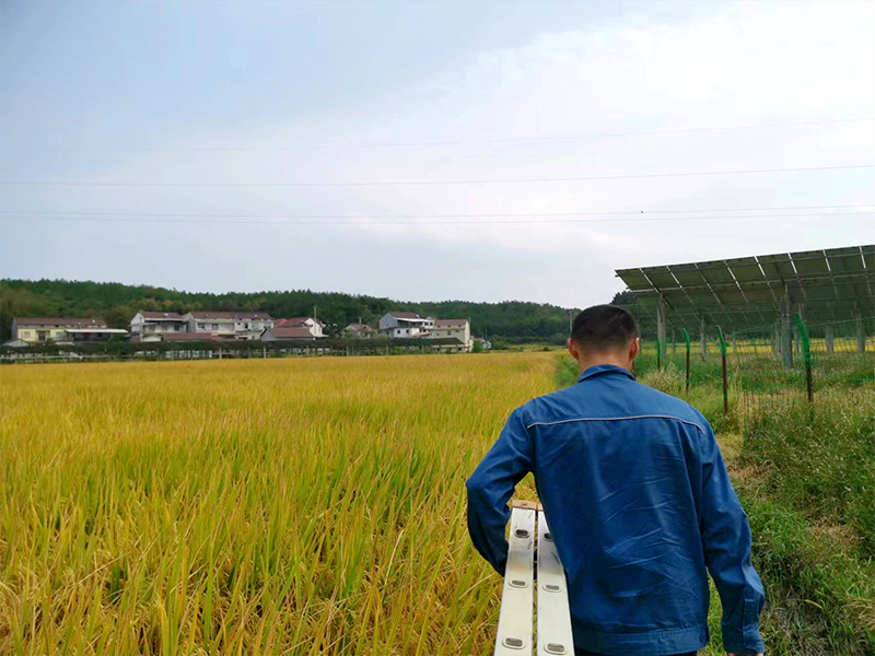 太湖鑫能電站位于安慶山區(qū),總裝機(jī)容量2萬(wàn)千瓦,占地面積647畝,分別在三個(gè)不同地方,區(qū)域跨度大、道路條件差,有些光伏區(qū)甚至無(wú)法通車,只能攜帶沉甸甸的維修設(shè)備徒步前行,身體和設(shè)備維修都面臨著極大考驗(yàn)。10月1日上午11時(shí),驕陽(yáng)似火,“秋老虎”的回歸使氣溫重返36度。電站班長(zhǎng)謝文理帶領(lǐng)巡檢人員走在狹窄的田埂上,厚重的工作服下早已滲滿了汗水,他們已經(jīng)徒步巡檢了3公里的線路,走在最前面的謝文理在匯報(bào)完工作進(jìn)度后,轉(zhuǎn)頭對(duì)同行人員說(shuō)“12點(diǎn)前必須把這個(gè)區(qū)域仔細(xì)巡檢一遍,下午再去剩下的區(qū)域”。說(shuō)著他加快了腳步,一行人在泥濘的地面上留下了一串串深深的腳印。