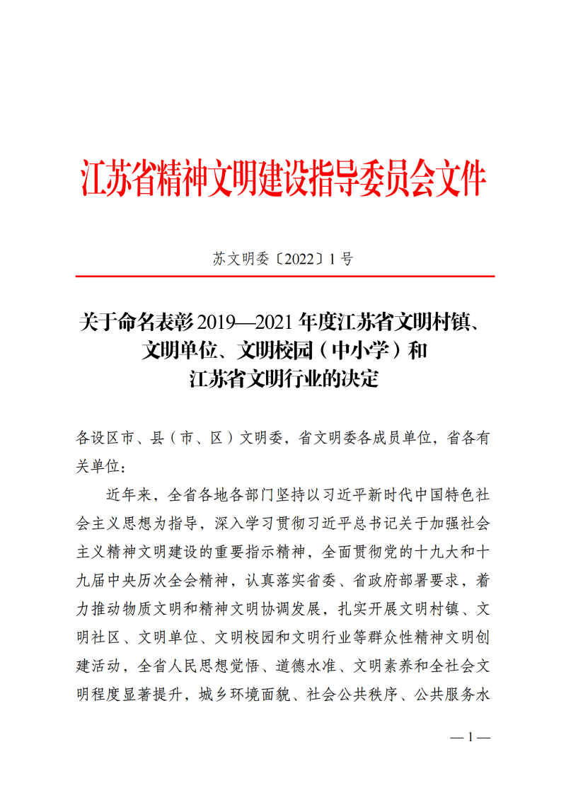 一、1月11日,徐州國投集團(本部)榮獲2019—2021年度“江蘇省文明單位”榮譽稱號。