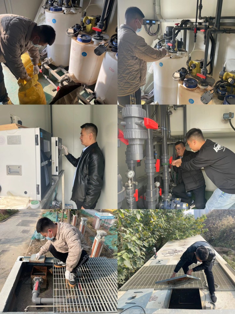 環(huán)保集團(tuán)組織人員先后來到云龍區(qū)民祥園路跨三八河?xùn)|岸、徐州醫(yī)科大學(xué)主校區(qū)圖書館北側(cè)、潘塘街道孫店社區(qū)閆河西側(cè)、大龍湖街道馮莊社區(qū)馮莊人民閘南側(cè)等四處分散式凈水站,對污水處理設(shè)施進(jìn)行全面巡檢、故障排查和設(shè)備維護(hù)保養(yǎng),及時發(fā)現(xiàn)并消除安全隱患。同時,通過APP在線監(jiān)控軟件實(shí)時關(guān)注設(shè)備的運(yùn)行狀況,確保凈水站設(shè)備穩(wěn)定運(yùn)行。
