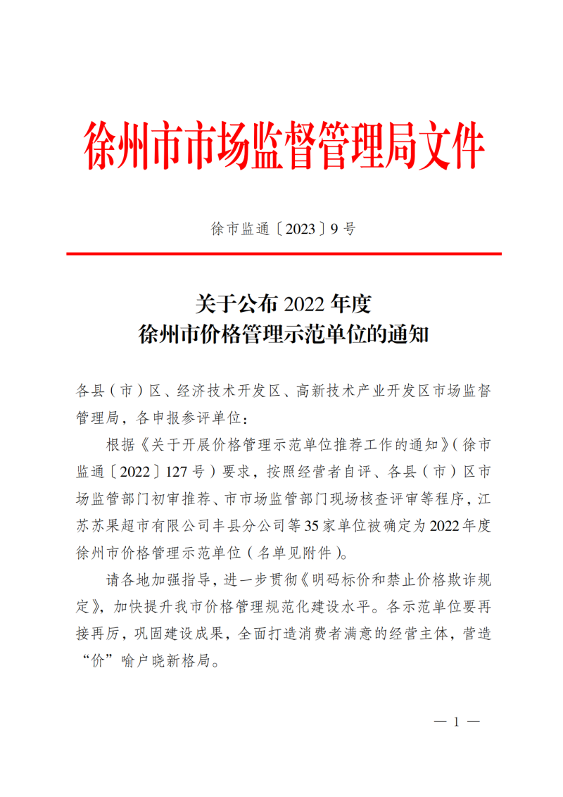 為深入推進價格誠信建設,不斷規(guī)范和引導市場價格行為,培育誠實守信的市場主體。近日,經過經營者自評、各縣(市)區(qū)市場監(jiān)管部門初審推薦、徐州市市場監(jiān)管部門現場核查評審等一系列程序,國泰太平洋酒店榮獲徐州市市場監(jiān)督管理局“2022年度徐州市價格管理示范單位”榮譽稱號。