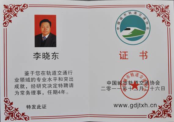 2011年12月26日,集團公司正式獲批成為中國城市軌道交通協(xié)會常務理事單位,2012年1月4日集團公司作為中國城市軌道交通協(xié)會常務理事單位正式掛牌開展工作。集團公司黨委書記、董事長李修明,黨委副書記、副董事長、總經(jīng)理李曉東被中國城市軌道交通協(xié)會特聘為常務理事。