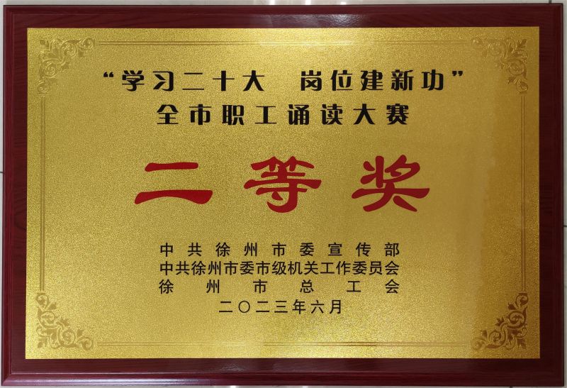 在市總工會(huì)聯(lián)合市委市級(jí)機(jī)關(guān)工委、市全民閱讀辦共同主辦的“學(xué)習(xí)二十大 崗位建新功”全市職工誦讀大賽活動(dòng)中,徐州國(guó)投集團(tuán)原創(chuàng)配樂(lè)誦讀作品《凝心聚力 奮進(jìn)新征程,敢為善為建功新時(shí)代》榮獲二等獎(jiǎng)。
