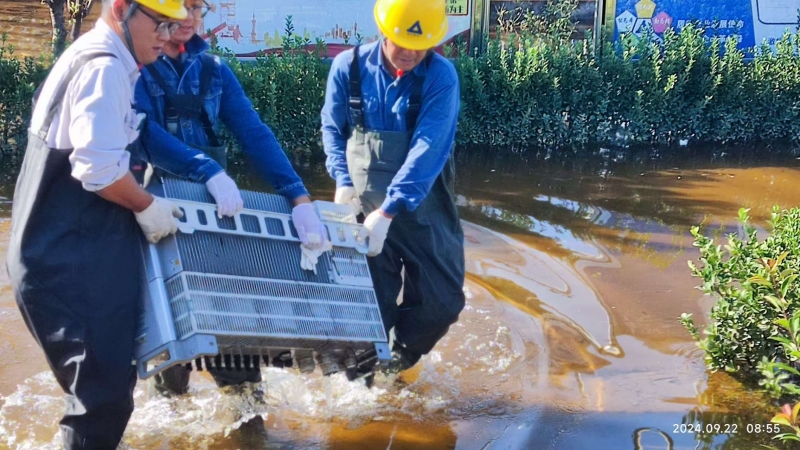 9月19日02時57分,暴雨黃色預(yù)警信號解除,面對一片狼藉的現(xiàn)場,全體員工沒有絲毫懈怠,迅速從抗洪搶險模式轉(zhuǎn)入查驗設(shè)備運行狀況與恢復廠容廠貌階段。“朱玉,趕緊采購下水褲、烘干機、消毒液?!眲⒅冶榉乐褂旰蟠紊鸀?zāi)害、加快設(shè)備檢查與恢復進程,迅速做出工作安排,對受損物資進行全面、精準地統(tǒng)計,詳細記錄受損程度和原因,向保險公司提交詳盡的理賠材料。經(jīng)統(tǒng)計,除3臺逆變器、1臺柜式空調(diào)、1扇電動大門等設(shè)備受損外,光伏區(qū)組件、支架、電纜、箱變、逆變器、匯流箱等重要發(fā)電設(shè)備均未受損。